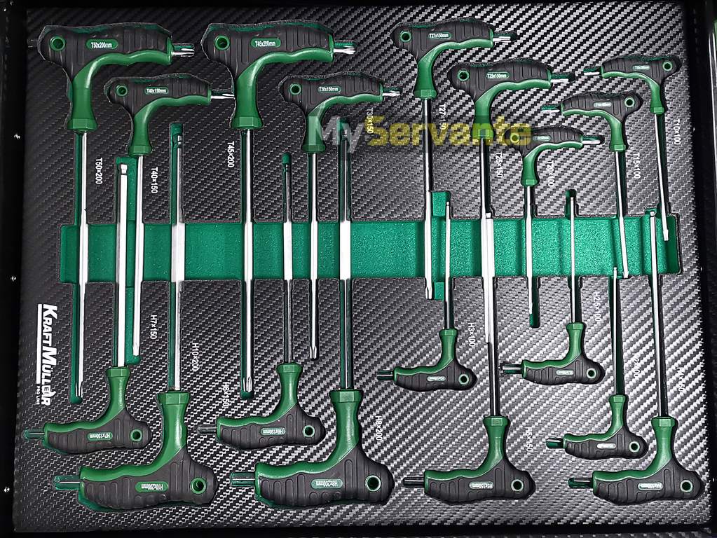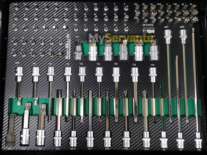 Nos servantes d’atelier équipées Kraft Muller disposent de tiroirs et compartiments pour rangers tous vos outils (clés, cliquets, douilles, tournevis, pinces…).